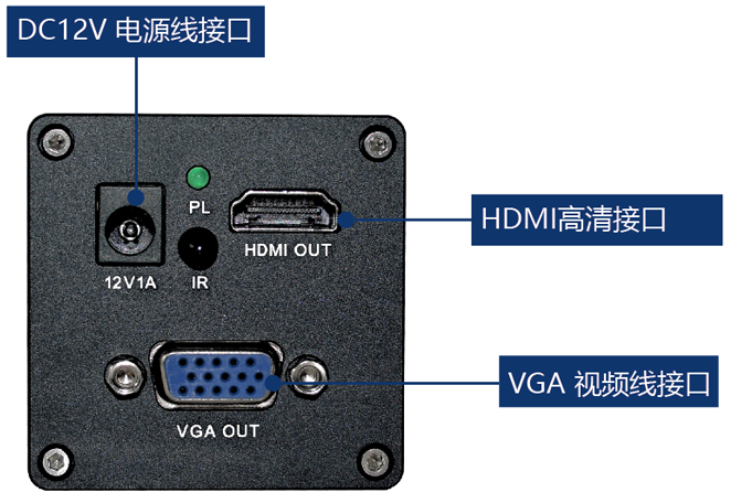 HDMI高清信号输出,成像高清USB接口实现了图像与视频的储存功能。