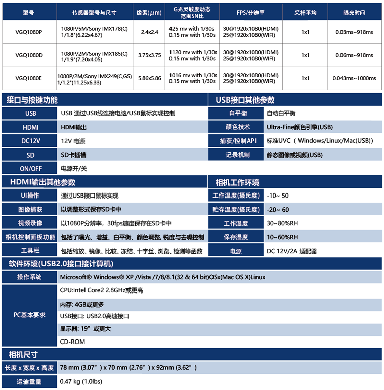 简要描述: VGQ1080P相机是维翰光电设计的一款包含多种方式输出(HDMI+SD卡的USB接口,它采用超高性能的CMOS传感器。相机即可以直接连接到HDMI显示器,还可以同时连接到电脑,更可以将图像同视频保存在SD卡中供现场分析与后继研究。