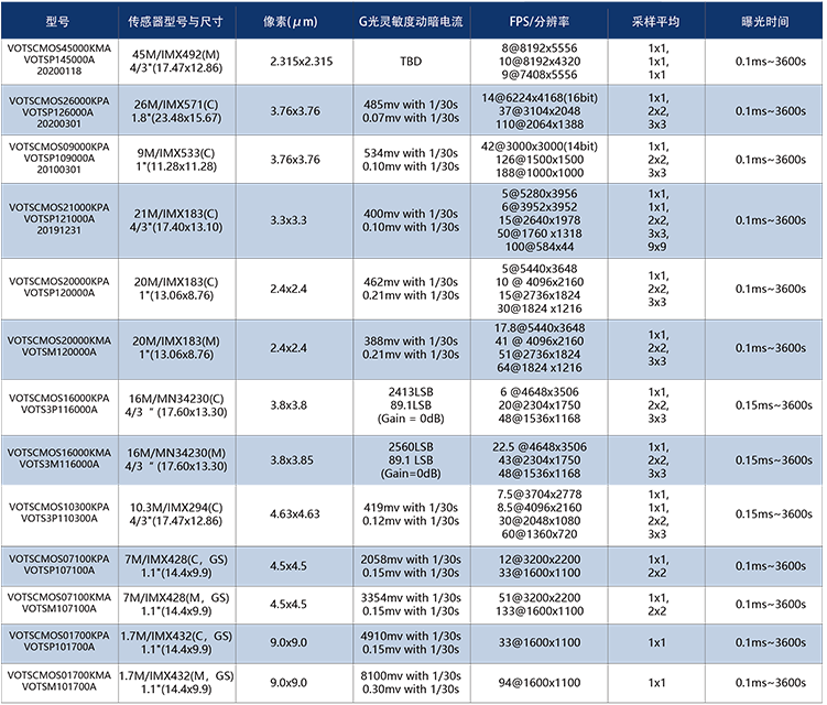 1.VOTSCMOS相机搭载了Sony Exmor CMOS等高性能图像传感器,针对传感器固有的热噪声,专门设计了高