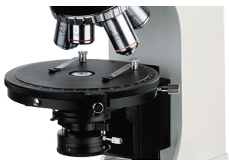 ■ 旋转式载物台,360°等分刻度,游标格值6',中心可调,带锁紧装置,