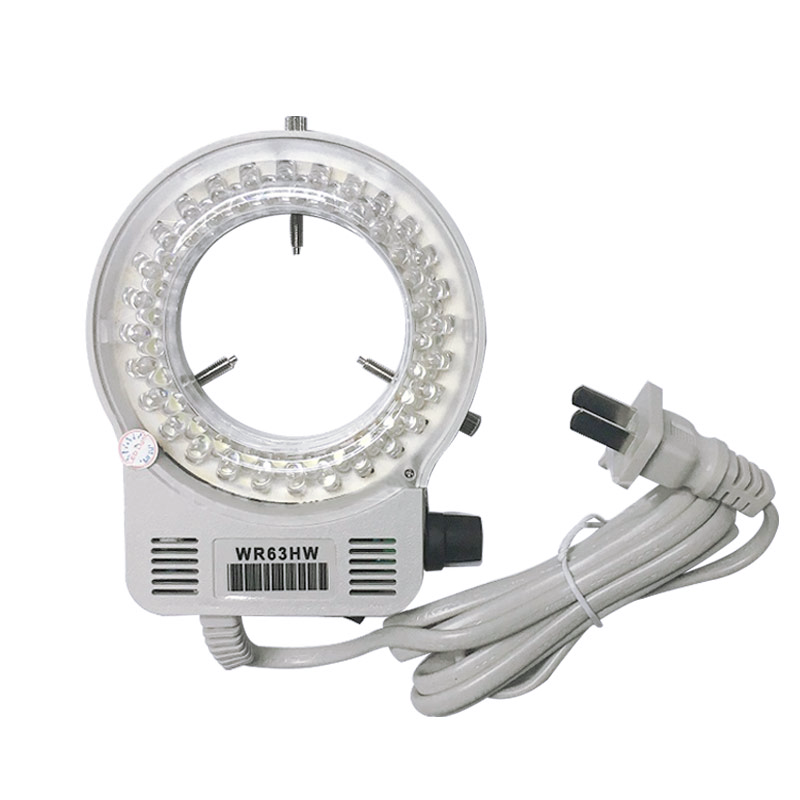 显微镜光源亮度可以按需要调节,是体式显微镜、单筒显微镜等光学仪器的光源。外壳使用塑料注塑加工而成,耐老化,阻燃性好。显微镜环形光源照射均匀,无虚影产生,清晰度高。