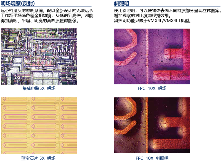 1、明场反射照明器:单颗大功率5W暖色LED照明,适用于VMX4L/VMX4LT机型。
