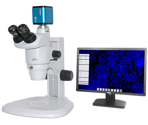 视频显微镜系统由尼康体式显微镜SMZ745T与1080P高清相机外加22寸高清显示器组成。能完成对生物切片及工件的图像采集与录像,并且可选装测量版的高清相机,对图像进行测量操作等。 SMZ745/745T同级别中的龄先机型全铨登场,密闭,防霉,防静电设计,采用75倍变焦机构,0.67x-5x的光学变焦范围提供了广阔的观察范围。至高的变焦比,提供了广阔的115mm工作距离。SMZ745T采用光路交换杠杆,使目镜和相机之间轻松切换,同步支持视频观察和图像拍摄。