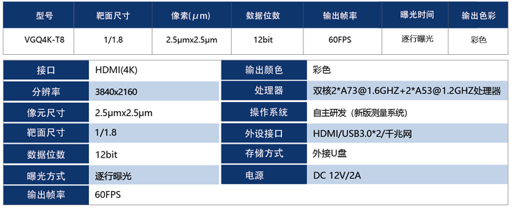 显微镜4K相机VGQ4K-T8,是VIHENT高清智能系列的*端新品。软件、硬件铨面升级。VGQ4K-T8相机延续了此系列产品的清晰流畅,简单易用特点的同时,进一步提升了图像细节的清晰度和软件运行速度。采用双CPU,大内存设计,产品更加稳定、快速。从标清到高清再到4K超清,一直走在行业的前研,助力银领机器视觉z细腻的视觉体验。本次推出的超清VGQ4K-T8相机再次提升了工业相机的成像品质和科技水平,是您视觉体验的*致之选。