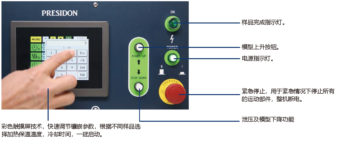 · 一键式全自动操作, 从加热, 加压, 保压到冷却全自动操作。